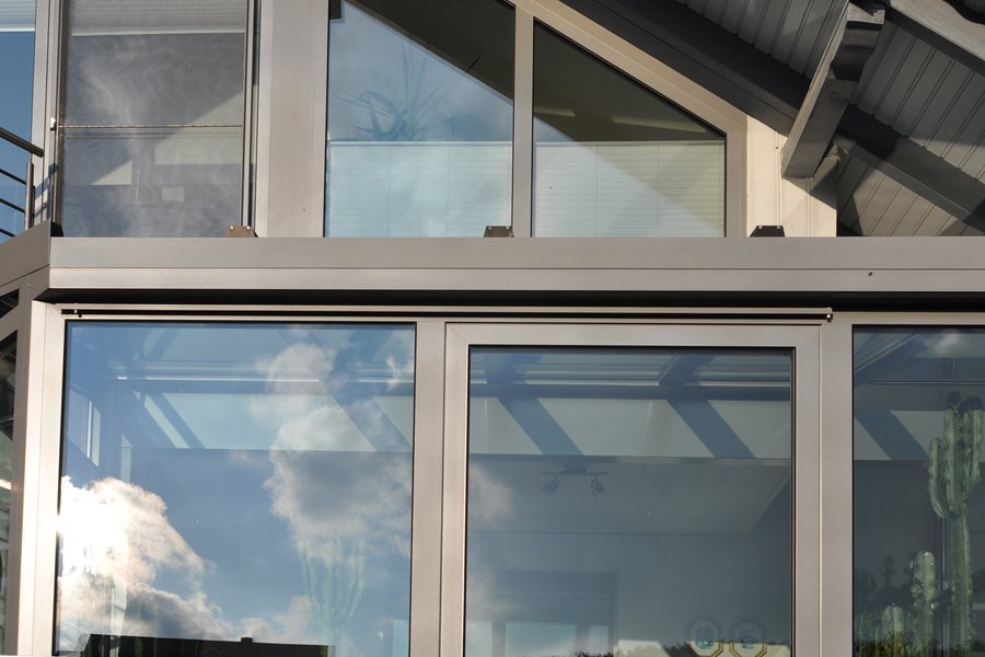 Die außenliegende Wintergartenmarkise des Aluminium-Wintergartens lässt sich bequem von innen steuern. Dies ermöglicht eine flexible Anpassung des Sonnenschutzes je nach Bedarf. Die zuverlässige Beschattung schafft einen angenehmen Aufenthaltsort, auch an sonnigen Tagen.