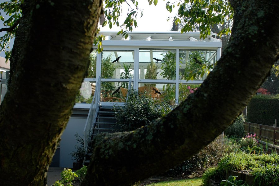 Dieser WIKOMA-Wintergarten beginnt im Hochparterre und endet auf Gartenniveau.Der langgezogene Flachdach-Wintergarten ist mit drei aufeinanderfolgenden Oberlichtern bestückt. Oberlichter Auf Wunsch des Hausherren kamen hier keine ...