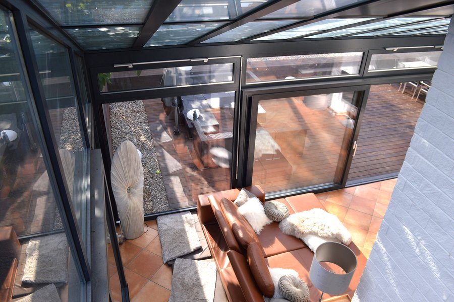 - Dachgaube im Obergeschoss mit Wintergartenmarkise als zusätzlicher Wohnraum