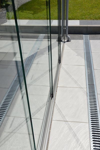 Die rahmenlosen Ganzglas-Schiebeelemente sind das Herzstück dieses Sommergartens. Sie lassen sich platzsparend zur Seite schieben, um den Übergang zwischen Innen- und Außenbereich fließend zu gestalten. Im geschlossenen Zustand sind die Schiebeelemente nahezu unsichtbar und ermöglichen einen ungehinderten Blick nach draußen.