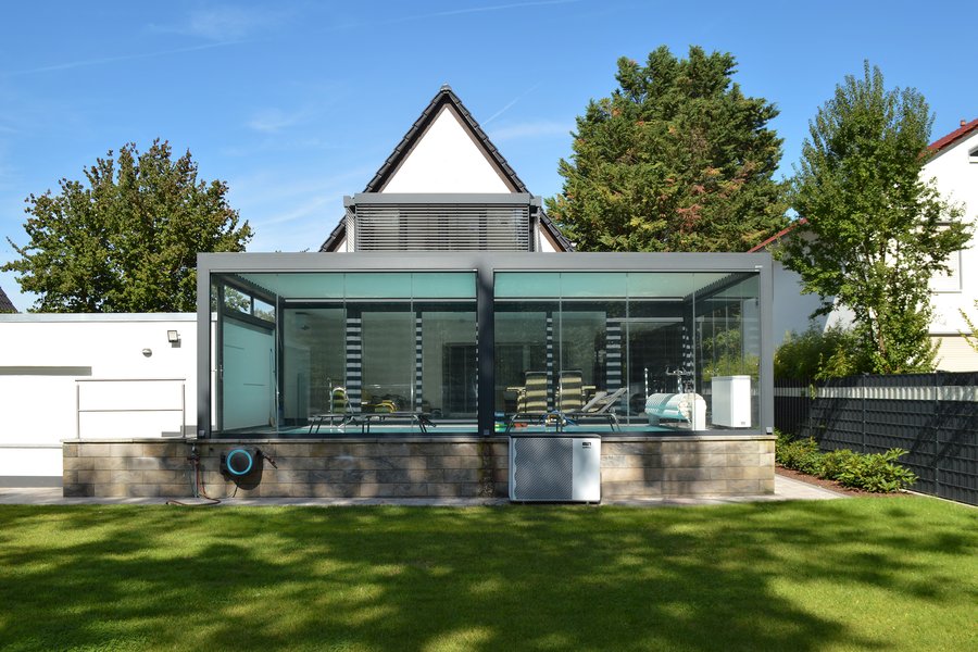 - Lamellendach als Poolüberdachung
