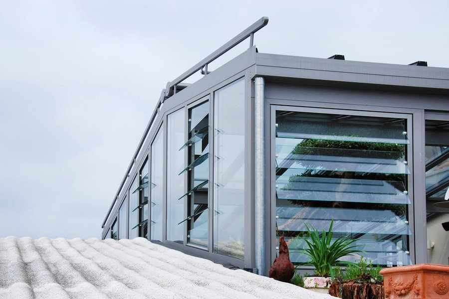 Stufenlose Luftzirkulation mit Lamellenfenstern und Hebe-Schiebe-Fenstern