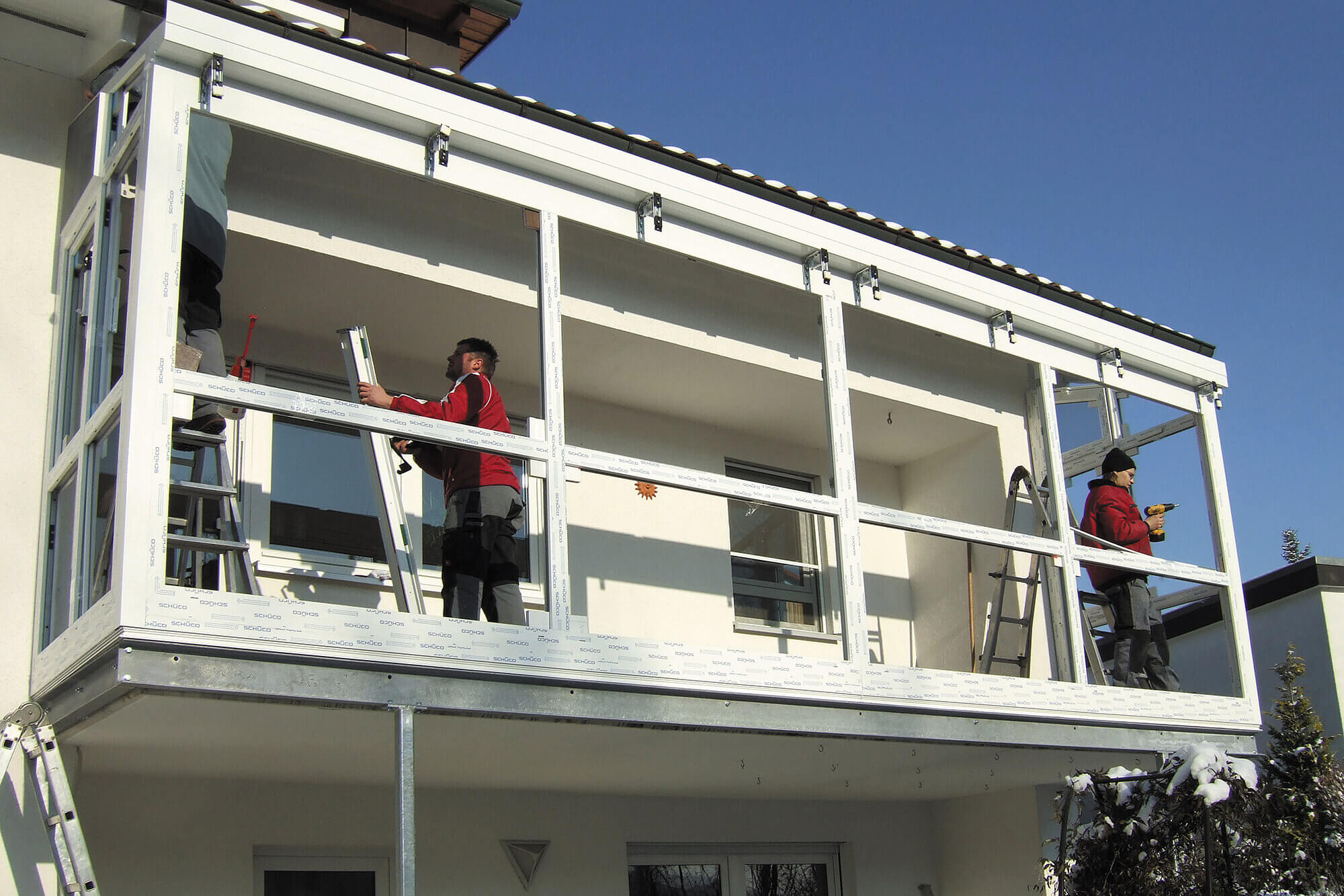 Die Vormontage in unserer eigenen Werkstatt ermöglicht einen schnellen und präzisen Aufbau vor Ort. Unsere routinierten Mitarbeiter haben jahrelange Erfahrung in der Montage von Wintergärten